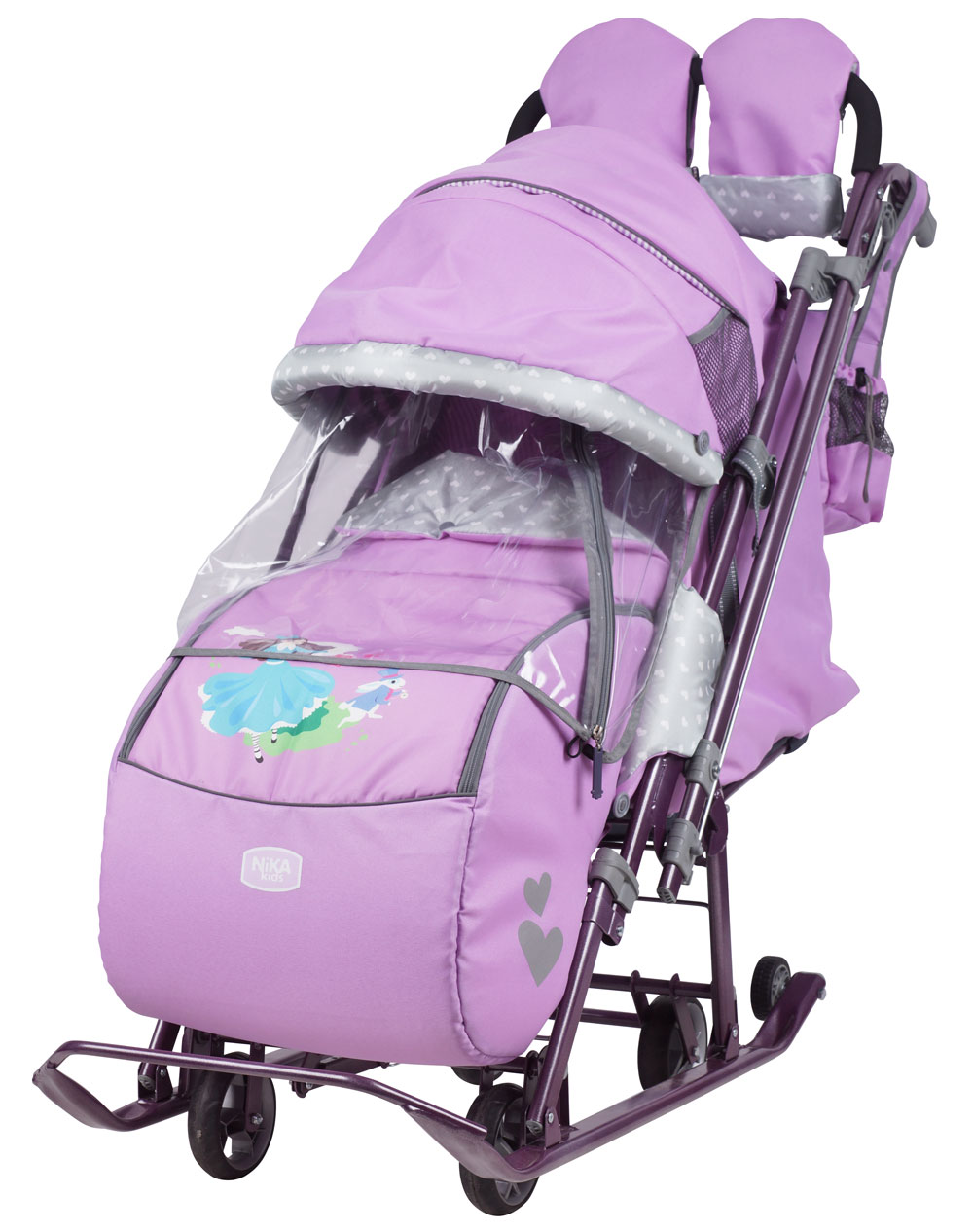 Коляска комбинированная с трансформируемым кузовом позволяет передвигаться по любой дороге. Нажатием ноги на педаль опускаются колеса, и вы можете везти коляску по асфальту или по гладкому полу. Еще одно нажатие — коляска трансформируется в санки и снова скользить по снегу!